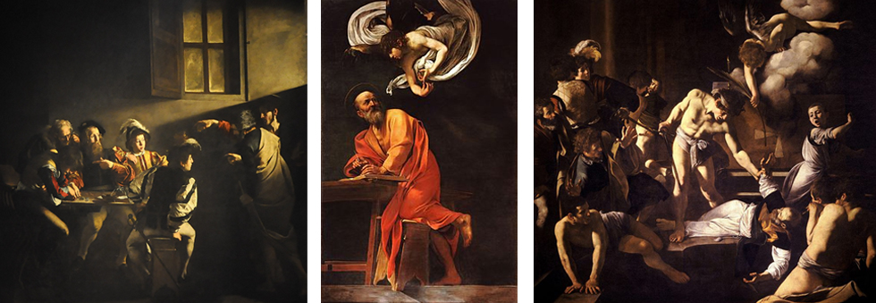 Je partirai tout simplement de ce que je connais, d’une part les trois peintures de la chapelle Saint-Matthieu à Saint-Louis-des-Français (La Vocation de Lévi, Matthieu l’évangéliste, et Le martyre de saint Matthieu) et d’autre part ce que j’ai pu observer moi-même de ce pape toujours étonnant, lors de mon long séjour romain. L’espace me manque pour m’attarder sur le Caravage lui-même, son œuvre peint, l’histoire de cette chapelle, mais on peut déjà souligner un certain nombre de traits marquants.