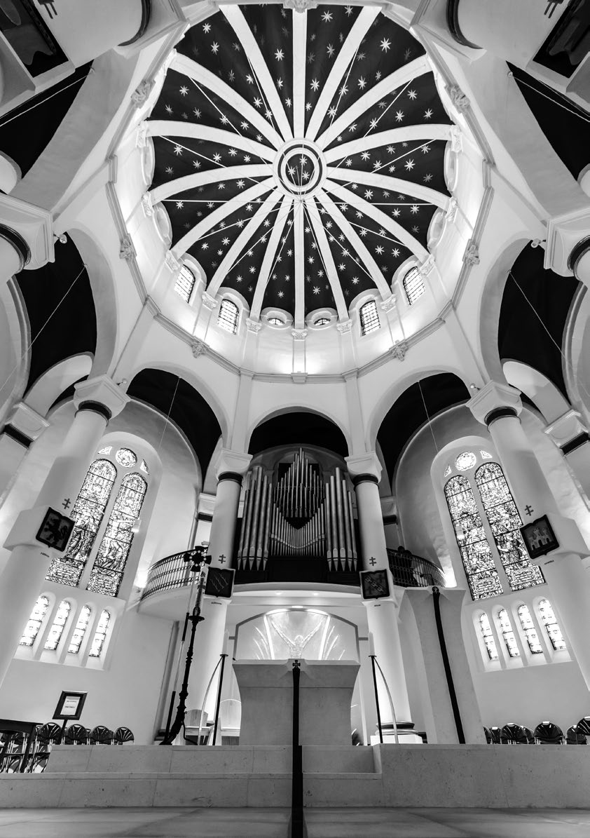 À mon sens, la vocation de l’Église est de donner un chemin d’accès à l’infini de Dieu. Dans l’encombrement de nos vies, elle entrouvre la porte de la chambre de clarté et de silence où se trouve la source d’eau-vive. La liturgie fraie ce chemin par les rites sacramentaux. L’aménagement liturgique par la vision et la beauté. Nos pères dans la foi ont élevé les voûtes, au défi de tous les possibles techniques, pour élever les âmes, et incarner la sensation de l’absolu dans les raies de lumière colorée nées des vitraux. Au chœur, nous sommes à l’épicentre. La croisée des chemins où il faut conjuguer l’horizontalité de nos vies et la verticalité de Dieu. C’est sublime et terriblement exigeant. L’émotion de la beauté sera elle aussi la coupe au- dessus de laquelle vous élevez le Saint Sacrement au bout de vos bras. Dieu descendra toucher des âmes, sur le chemin ainsi aplani entre la terre et le ciel, où il n’aura plus qu’à faire rayonner sa clarté.